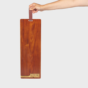 Stainless steel and leather version of those wheelie things you find in libraries to reach books on the top shelf. Kick it effortlessly around the floor and it glides around on its wheels. Sit on it and the wheels retract to stop you rolling around. The useful rubber straps on the side are ideal for keeping magazines in place.