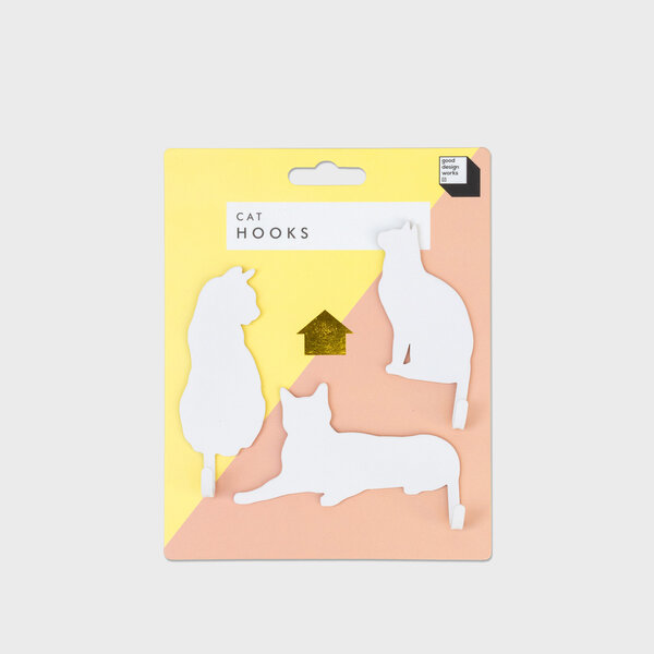 Set of 3, very simple metal wall hooks, in the shape of cat & dog silhouettes. Tailes curl up to form the hook. Great for hanging keys, dog leads, cat collers, tea towels or any other household object that you don’t want lying around your home.