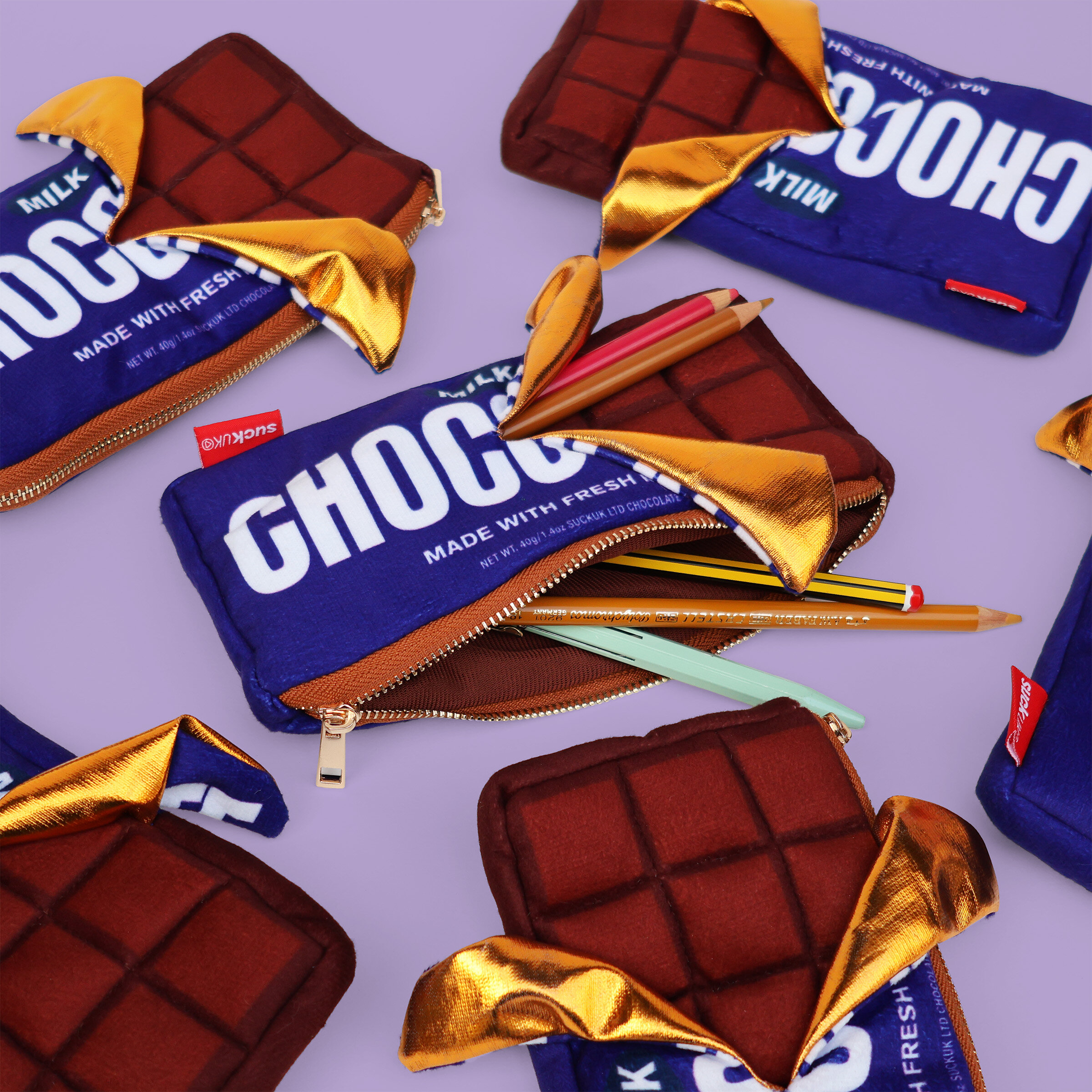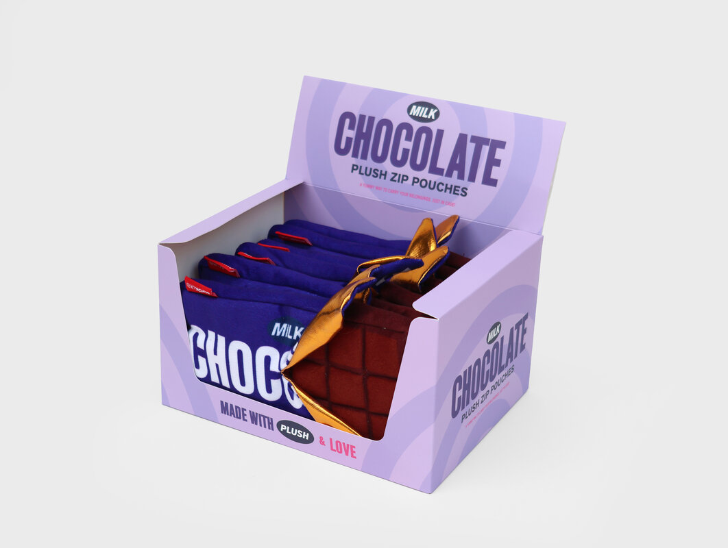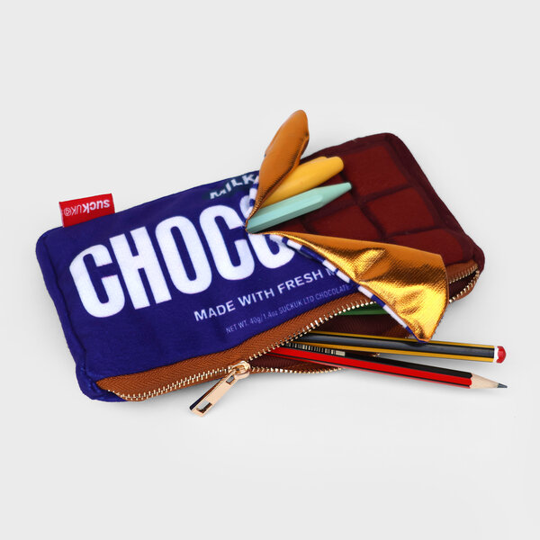 Plush chocolate bar shaped case with gold zip. Store your belongings in style by tucking them into this sweet treat. Yum!
