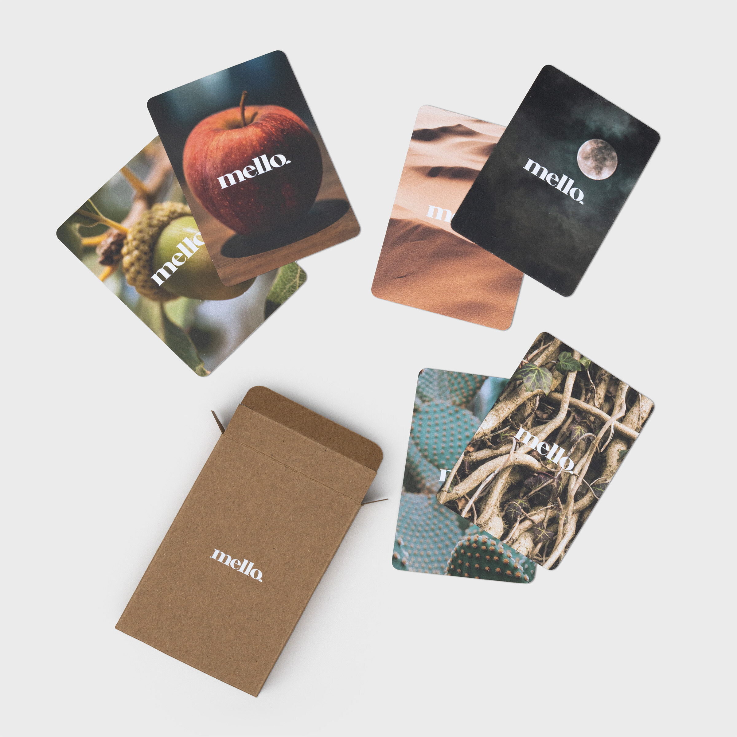 Welcome to The Oracle, a deck of cards inspired by the natural world and designed to help guide you on your journey of self-discovery. Draw cards from the deck and use the included fold-out guides to prompt and record your thoughts as you progress. See all of Mello