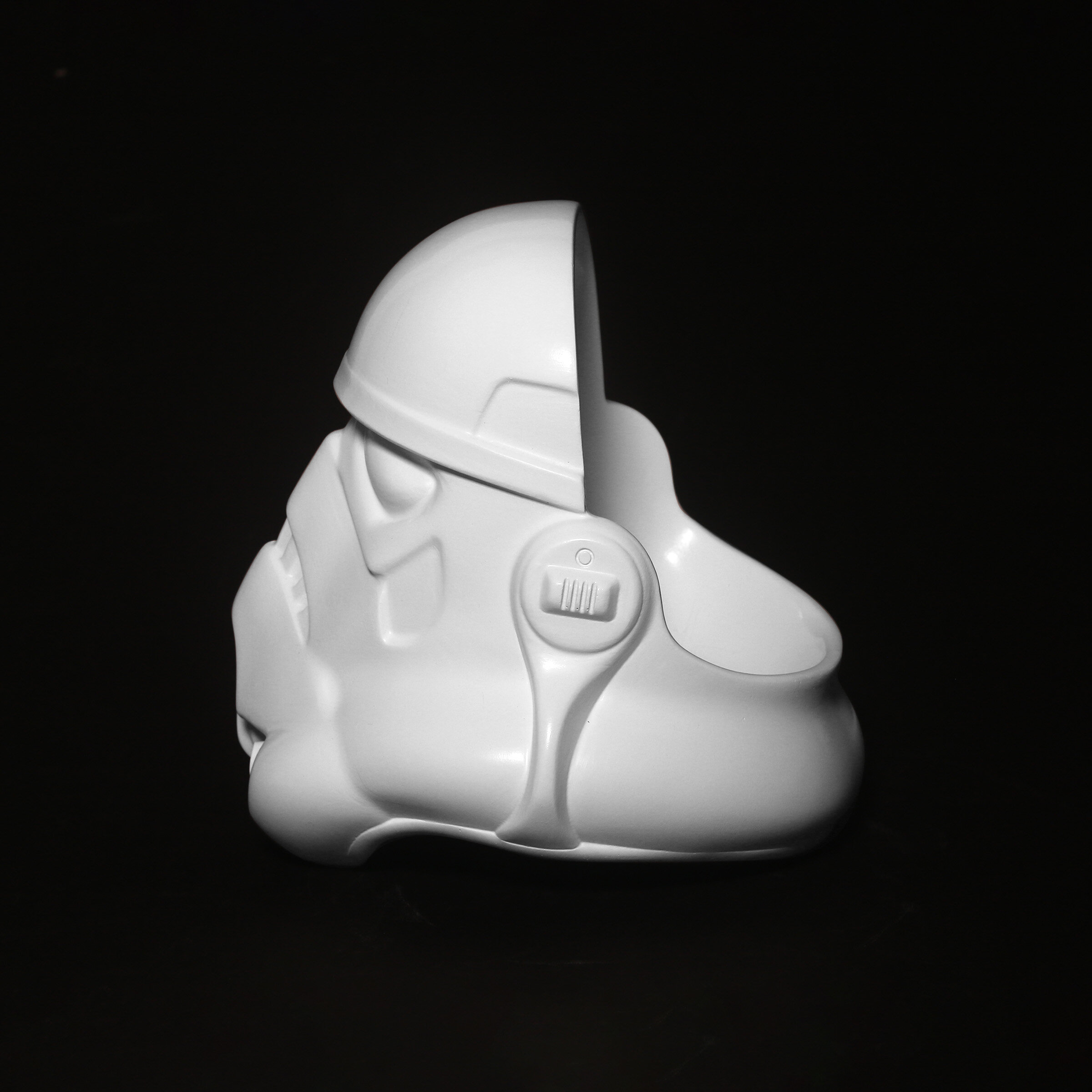 Andrew Ainsworth of Shepperton Design Studios originally created iconic characters such as the Stormtrooper in 1976. This product is modelled from the original helmets produced for the movie. Those originals were hand made, and not perfectly symmetrical. This wonky charm is intentionally replicated here!