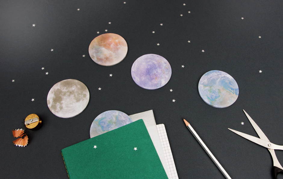 Realistic planets printed onto round sticky notes. Who doesnt want that? (4 Assorted Designs, 1 SKU)