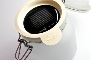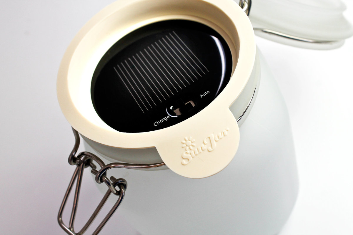A solar panel charges the battery during the day. Sun Jars work best in direct sunshine, outside or in a sunny window.