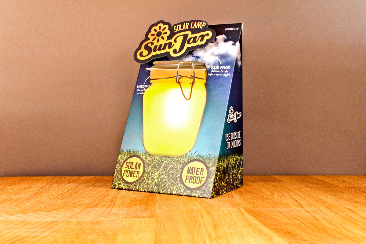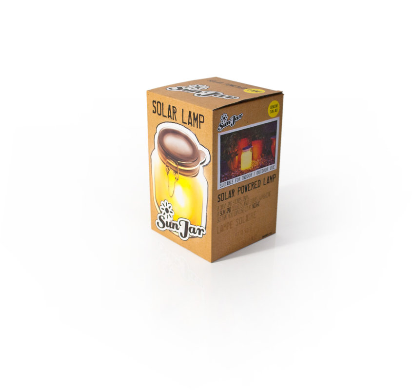 Switches on automatically when it gets dark. Glass jar with hidden solar panel stores sunlight during the day and illuminates at night. The Sun Jar collects and stores sunlight during the day, and makes a beautiful night light in the evening. For use indoors or in the garden. Really simple - just a solar panel, battery and LED light all housed in a traditional mason Jar.