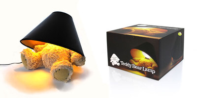 Is he a bear? Is he a lamp? Whichever way you choose to see him, he's weirdly wonderful. Let him win a place in your heart as he sits quietly on your shelf or bedside table. The black fabric-covered shade is a reflective gold on the inside to enhance Teddy's golden features. His plump body lets you park him where you please without fear of him toppling over. Poor Ted may have lost his head, but he definitely lights up the room!. Design by Matthew Kinealy |