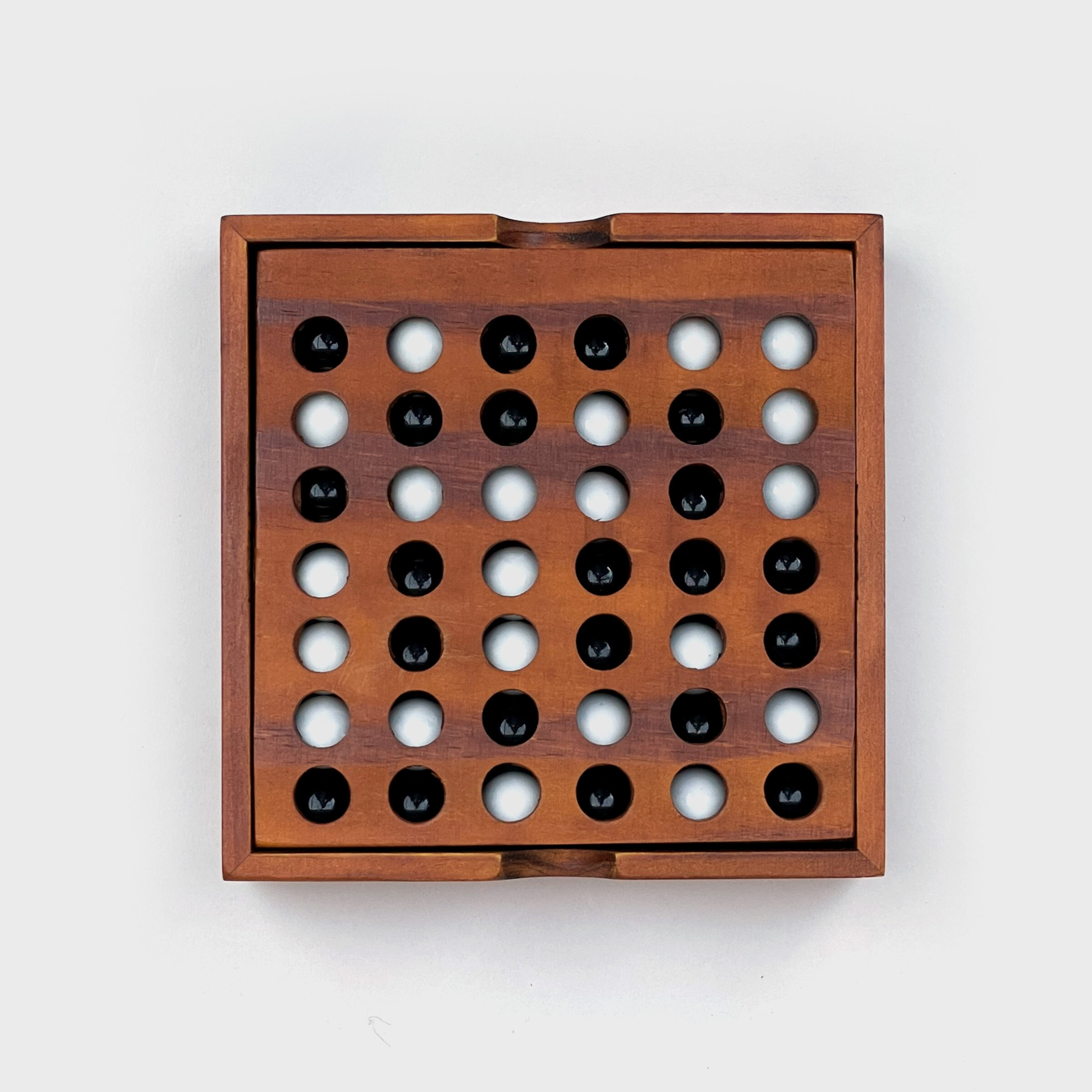 - 42 black and white glass marbles.