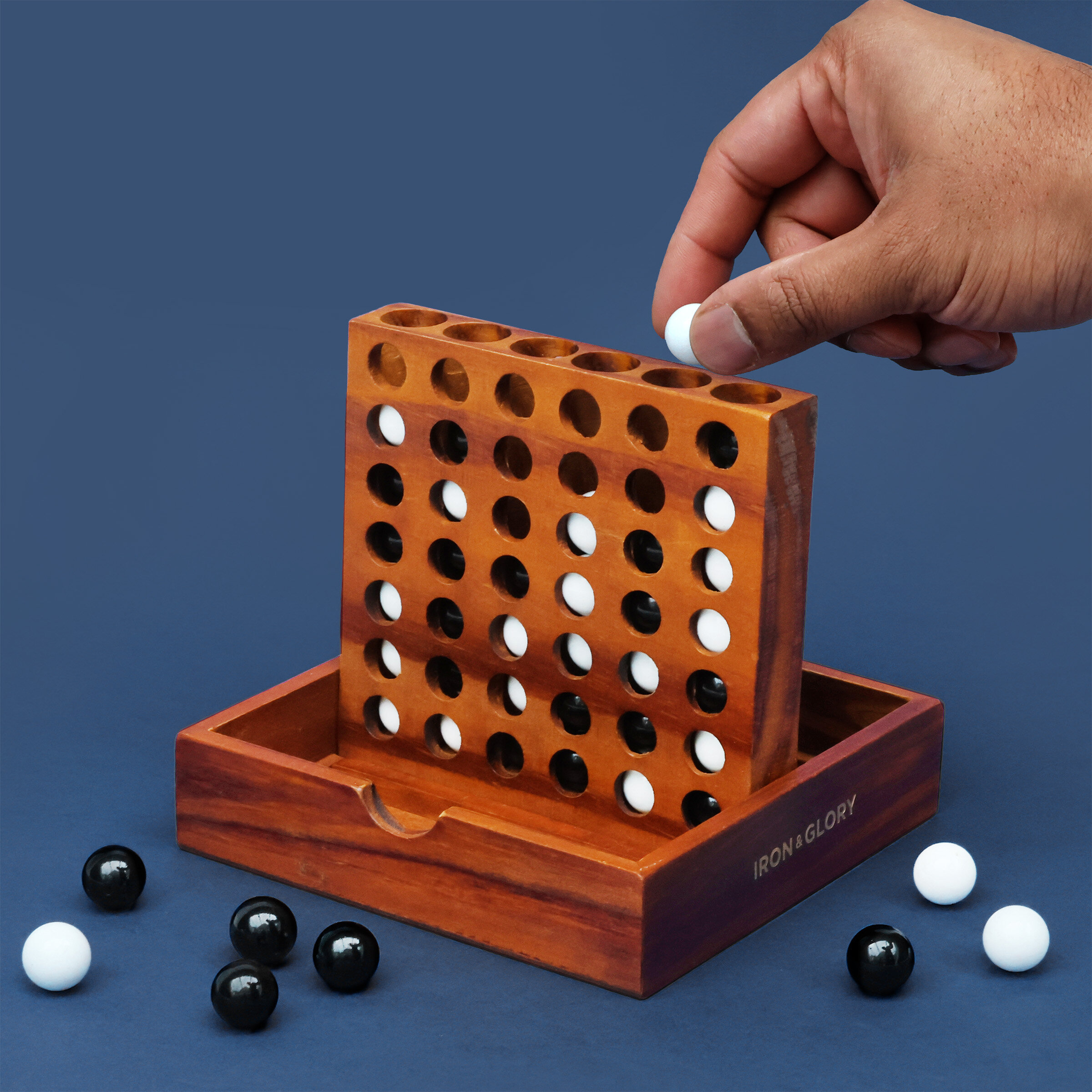 Iron & Glory Wooden Four-in-a-Row game.