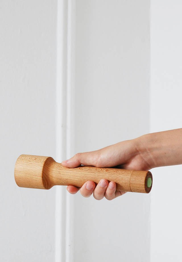 Unconventionally simple and eco-friendly, this flashlight belongs on your table, not hidden in a drawer. The designer's intention was to take the industrial edge off an iconic, mass produced object. Flashlights are typically made from plastic. New growth Beech wood transforms the utilitarian into something tactile. Energy efficient LED bulb. A great gift for eco-warriors in a power-cut.