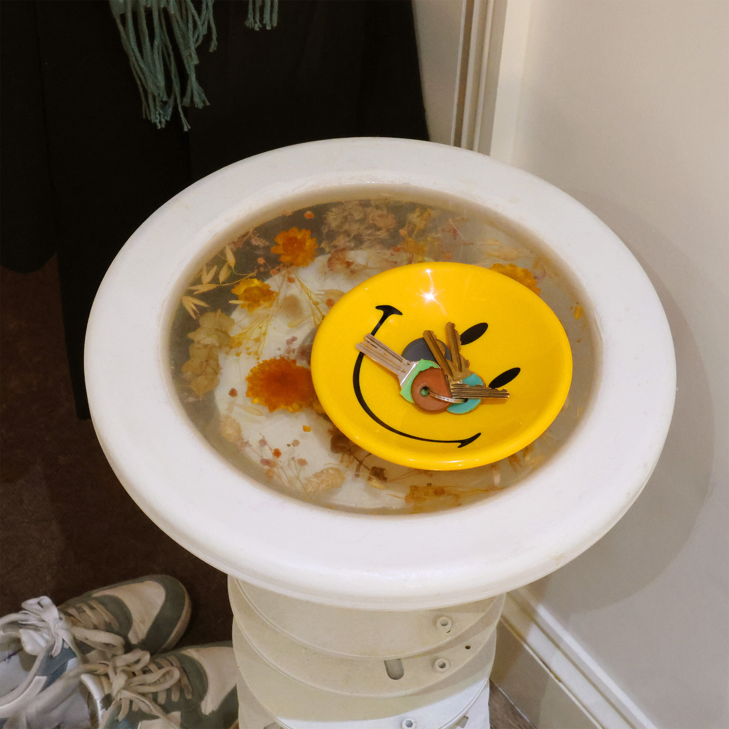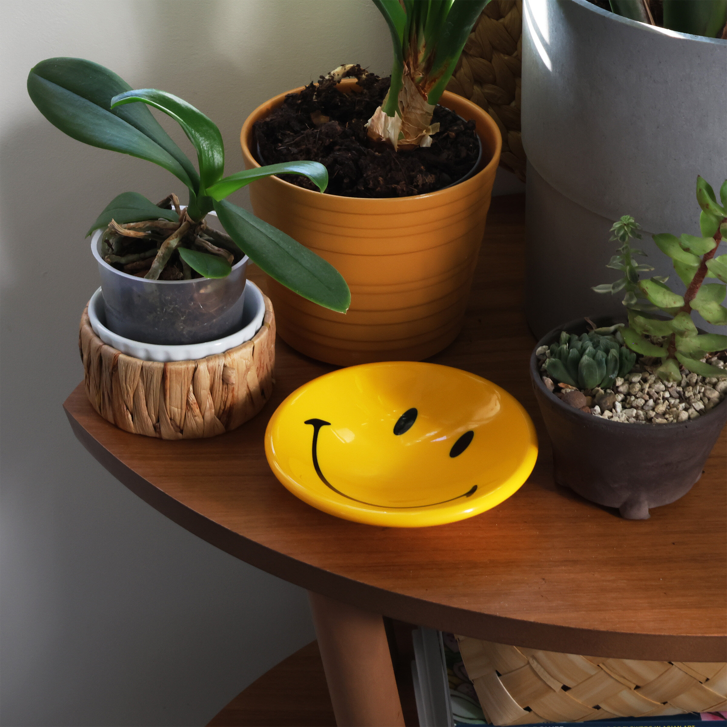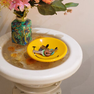 Keys, coins, jewellery, pocket clutter, daily detritus: dump it all here and let the smiling face take the strain. Bright, glossy and unapologetically cheerfull, it sits by the door doing one job very well: stopping you from losing your things and your temper.