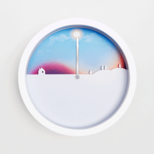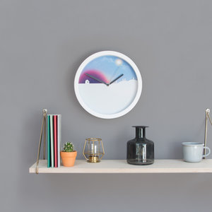 Hang this unique clock on the wall and enjoy the view from dusk 'til dawn. The skyline gradually rotates as the hands move, so what you see on the face always matches the daylight outside. Spans a full 24 hours. The perfect gift for clock watchers. Design by Nick Lerwill for SUCK UK