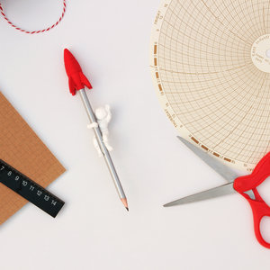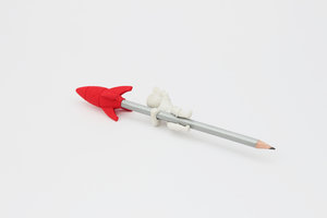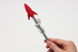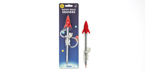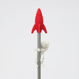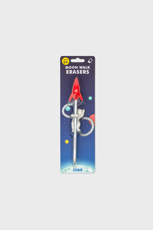 Satisfy your love of space and stationery with a space walking astronaut tethered to his craft by a silver pencil. Set includes silver pencil and two erasers.