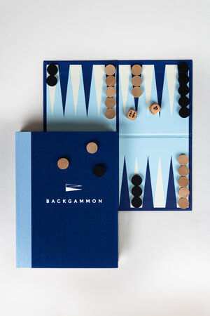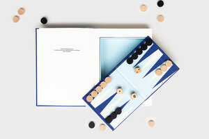 Open up this hardback, cloth-covered book and you'll find a Backgammon board, dice and pieces neatly stashed within the pages. When the game is over, display the set on your bookshelf or coffee table. Backgammon brings people together. Whether you're a seasoned player or new to the game, this set offers endless opportunities for intellectual stimulation and friendly competition. Pages include rules of the game in four languages.