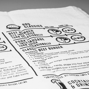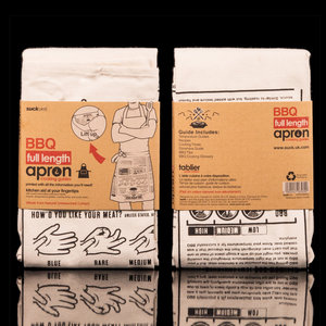 Serve your guests the perfect steak without getting greasy fingers on your cook books. We've moved the recipes to the place you're supposed to wipe your dirty hands! An apron full of useful information: cooking times for a variety of meat, fish and vegetables, BBQ tips and tricks and some summertime cocktails to get the party started. A great gift for the man who cant boil an egg but insists on taking over the BBQ.