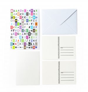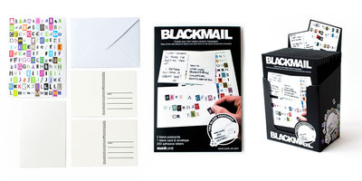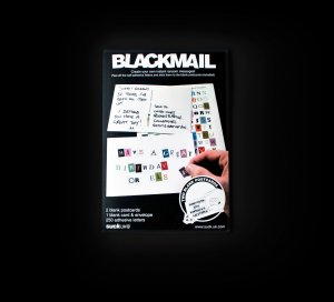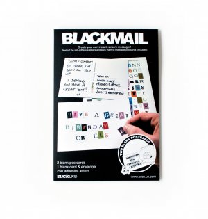 Ever made a randsom note? The time consuming part is sitting down with scissors and a woman’s weekly, cutting out and sticking the letters. The Blackmail pack contains blank postcards, and over 250 assorted self-adhesive letters. Create your own ransom messages: “Have a great birthday, or else!”, “Be my Valentine… or the puppy gets it!”. etc