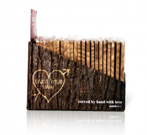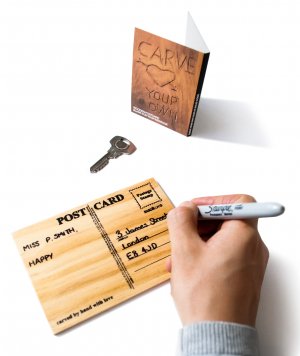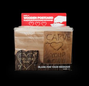Blank piece of wood for your own message. Just scratch or carve into the surface to create your own message or picture on the front. We love a cliche at SUCK UK so we'd go for a classic heart pierced with Cupid's arrow and a pair of initials...