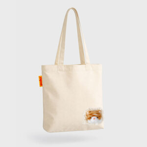 Natural cotton tote bags with something going on inside. Each bag features a cute plush animal poking its head through a rough, frayed hole, like it’s stowed away for the day and enjoying the view. Functions like a tote / Feels like a companion / Explains nothing.