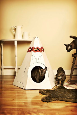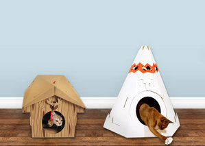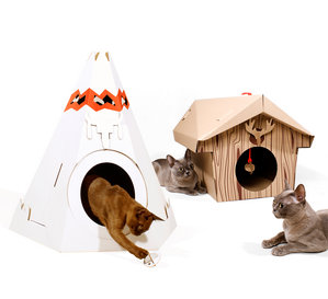 Perfectly complementing our Cat Playhouse range of fun accessories for pets, the Cardboard Teepee & Cabin provide a more grown-up place for your feline friends to fall asleep. Shaped like the homes built by Native Americans and men of the American frontier, they evoke adventure, pioneering spirit and a life-on-the-edge attitude to life. None of which house cats have of course, but they will also be grateful of a private place to sleep and for the playballs and toys that come with both designs. asleep. Ideal for other small pets like rabbits too!