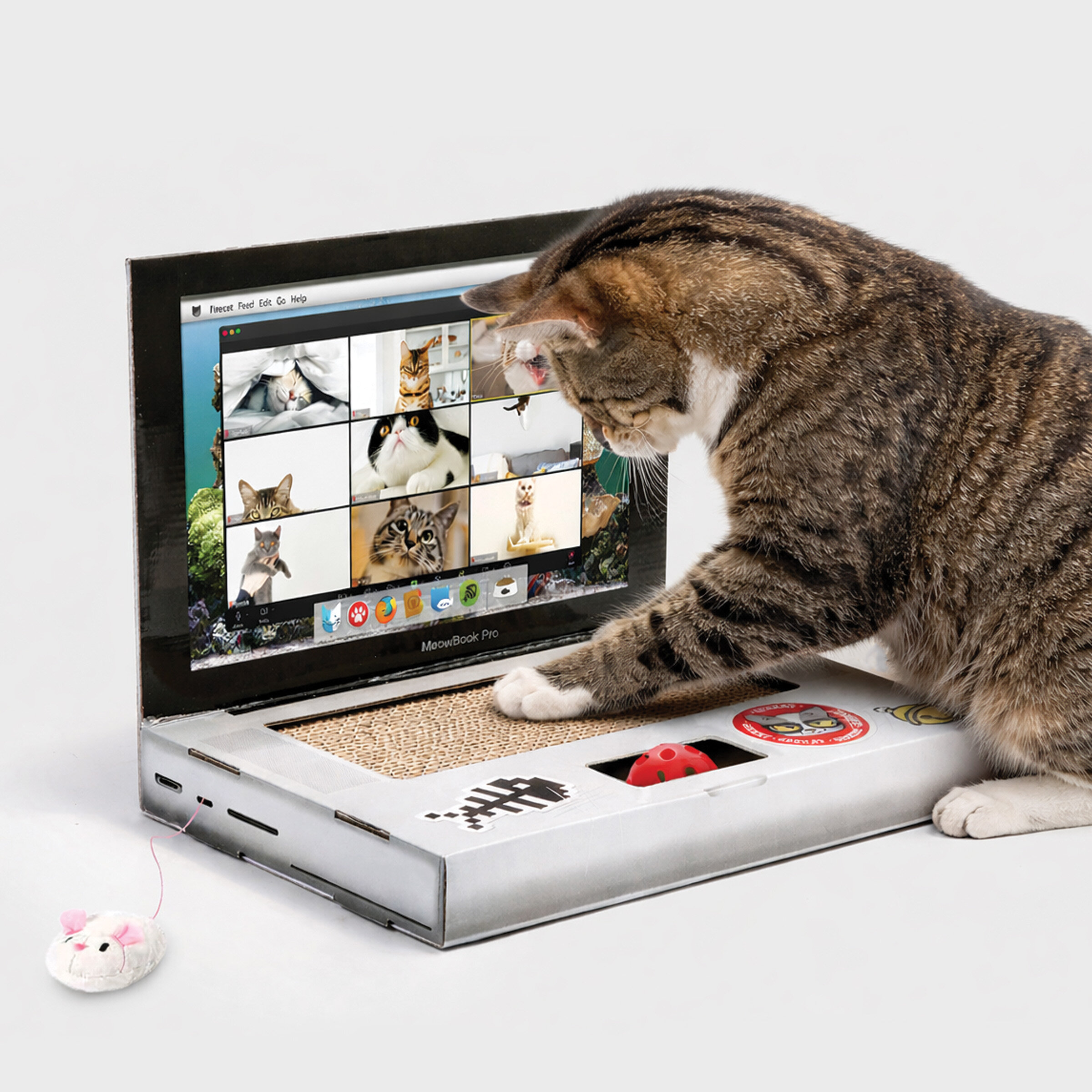 Does your kitty feel left out while you are busy on your laptop? Now everyone can be on Facebook, even your cat. Tiddles will love getting her claws stuck into the irresistibly scratchy cardboard keyboard (and it will keep her from tearing up your furniture). If you want to upgrade the operating system or install new applications, simply print a new screen on paper and slide it inside. A great gift for your nerdy cat.