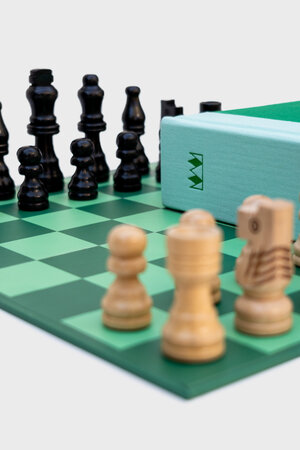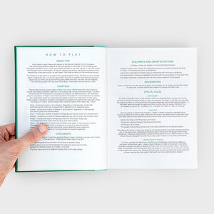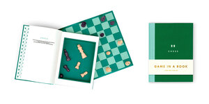 Open up this hardback book and you'll find a chessboard and pieces neatly stashed within the pages. When the game is over, store on your bookshelf or with your coffee table books. Includes introduction to chess and rules of the game in four languages. A conversation starter and an object of admiration.