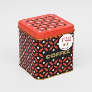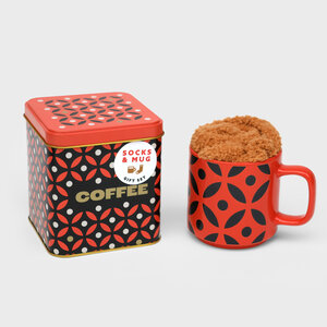 Because a proper cup of coffee deserves proper accompaniments. This cosy little set brings together everything you need for peak relaxation: warm, snuggly socks for your feet, a stylish ceramic mug for your brew, and a beautifully patterned tin to keep your coffee stash looking sharp.