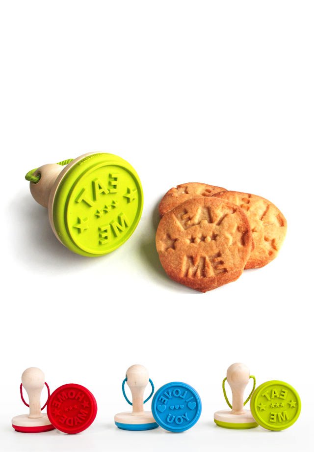 Home baking is cool. You know that, just be sure your friends know too, stamp each of your cookies with pride. Take a stand against profit-driven global expansion: Bake your own, and be proud... "HOME MADE", "I LOVE YOU" and "EAT ME" Cookie Stamps. Power To The People.