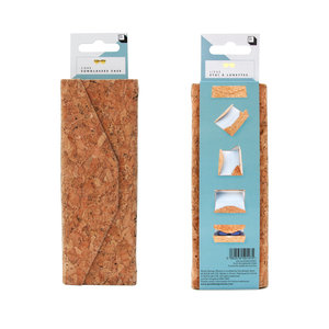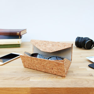 A convenient flat-folding cork case for glasses or sunglasses with a soft fabric lining