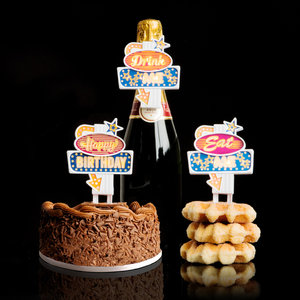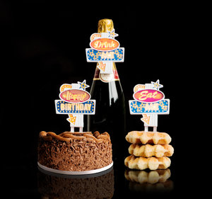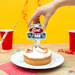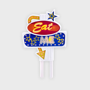 A delicious decoration for any feast Brighten your doughnuts, cakes, burgers & burritos… in fact, turn any meal into a feast buy spiking the legs into your chosen treat. Activate the 45 second light display with the push button on the back. The letters are illuminated by LEDs and flash the affirmation in sequence “Eat. Me. Eat. Me. Eat. Me”… Turn your food selfies into a mini Las Vegas photo opportunity – Instagram won’t know what’s hit it! Endlessly re-useable for multiple dinnertime goodness. Get stuck in.