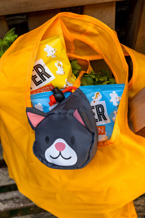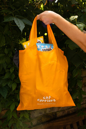 Compact, lightweight and foldable shopping bag. Great for groceries, better for emergencies. Don't find yourself caught short at the supermarket. Take your cat to the shops - who cares if people think you are crazy.