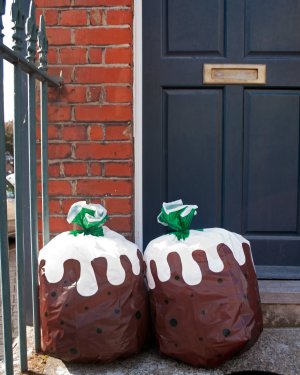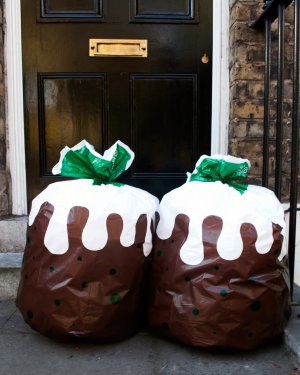 Make the boring chore of taking out the rubbish more artistic. Brighten up your day - and your bin - and your bin man’s day. Disguise your household waste as giant Christmas puddings. Biodegradable bin bags, also make great “gift sacks”.