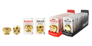Clips as tough as they look. Super-grip, multi-purpose metal clips. Really strong and really useful all around the home, from sealing food packets to organising the office. Extra large size with a brass finish. Available in skull or bulldog designs.