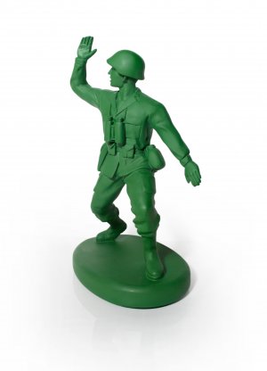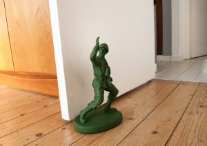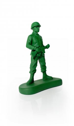 Extra-large and extra-heavy toy soldiers make great doorstops and bookends. Perfect scaled up replicas of the original tiny green army men loved by small children the world over.