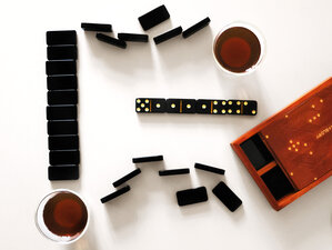 Dominoes is not as simple as it looks. This is a brutal battlefield of mind-games, sweat, and chance. Every tile laid down is a gamble with fate. It’s strategy, instinct and survival. A chaotic mess of black-and-white dots. A high-stakes standoff, leaving you wondering if you ever really had control and if the world around you is a digital projection of a past reality.