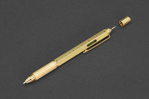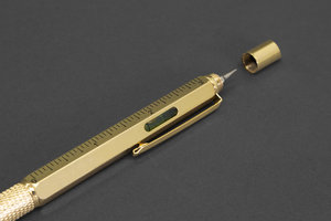 A beautiful retractable, refillable pen with integral spirit level, ruler and flathead/crosshead screw drivers. What could be more perfect? Both creative and practical. Form and function in perfect harmony. Rugged and reliable.