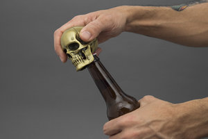 Crack One Open in style, with our heavyweight, matte gold finish skull bottle opener.