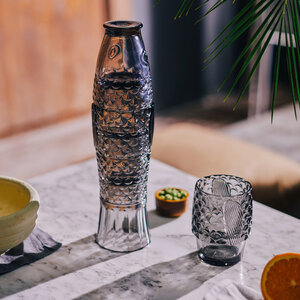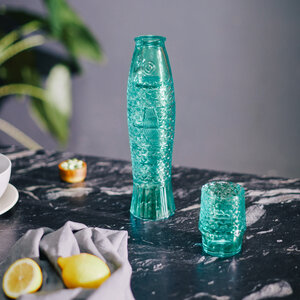 Surprising set of 4 stackable glasses with different shapes that form a fish once stacked.