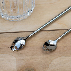 Serve your guests with a flamboyant flourish. Our long handled skull spoons are equally at home scooping naughty deserts and swizzling devilish drinks. Not simply designed to awe your guests - they are perfectly practical, the long reaching round handle and small head are perfectly suited to the job in hand. 23cm (9") long.