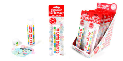 Celebrate! Make occasions special. Shower your favourite person in colourful retro confetti. Perfect for Weddings, Valentine's, Anniversaries or just because “I love you”. Super light-weight paper replicas of retro Love Heart Sweets. Packaged in a fun oversized Love Hearts tube which makes it easy to scatter around. It's highly recommended that you don't use real Love Hearts... you probably won’t be invited again!