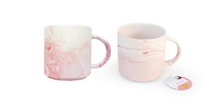 Black and pink marbled finish ceramic mugs. Perfect for a morning brew.
