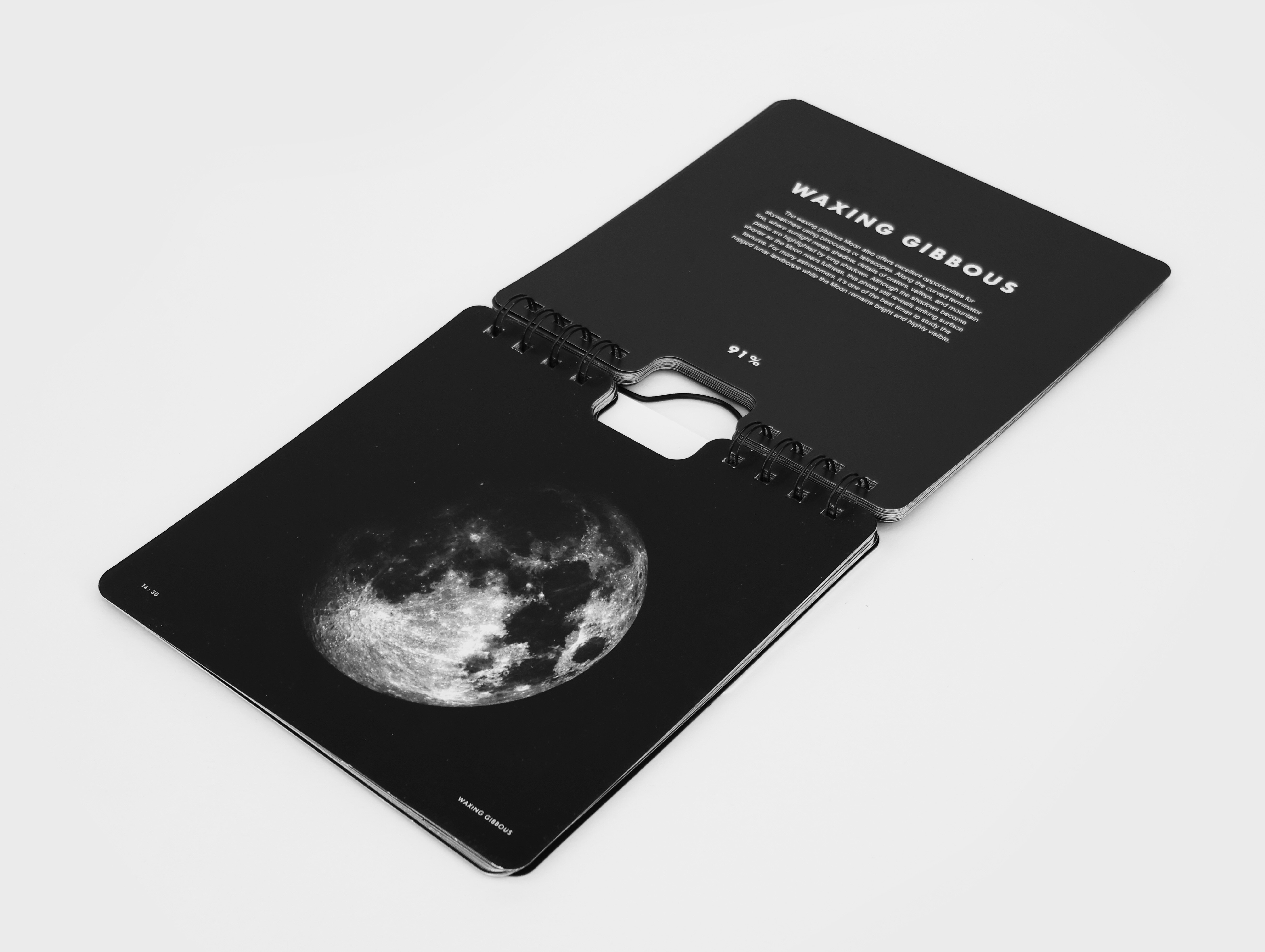 Keep track of the moon's phases by flipping the calendar each day. Packed full of celestial facts and information as you travel through each of the moon's phases.