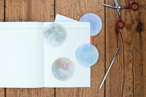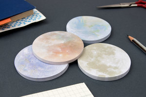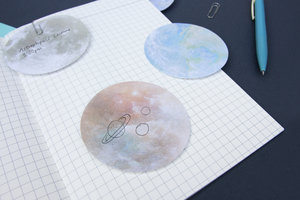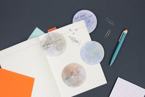 Realistic planets printed onto round sticky notes. Who doesnt want that? (4 Assorted Designs, 1 SKU)