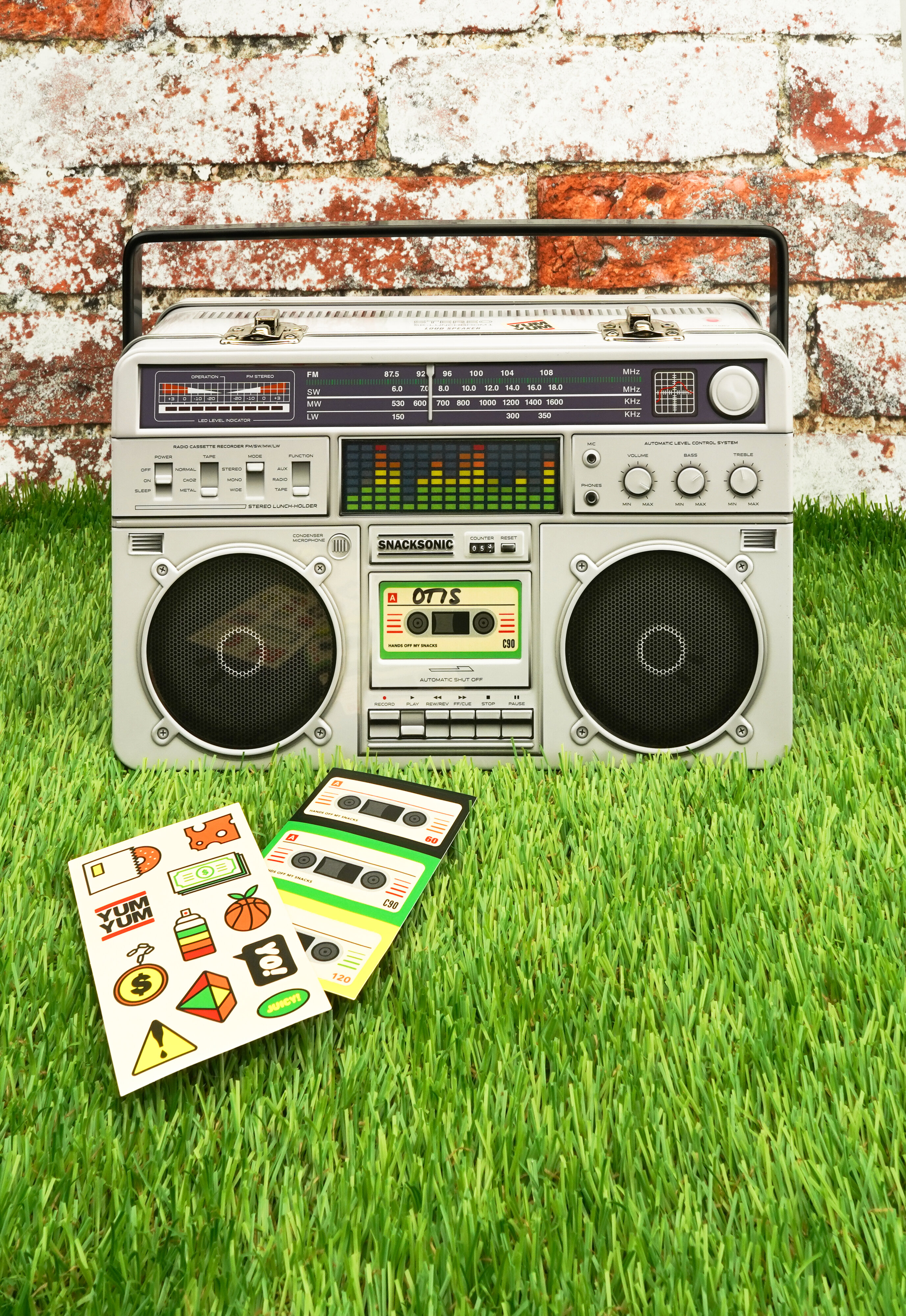 Cool kids bring their own lunch. The coolest kids carry lunch like it's 1989 and your are a street-wise New-York Hip-Hop kid. A classic tin lunch box disguised as a super cool retro ghetto blaster. Big enough for a good size packed lunch and fun enough for both kids and adults.
