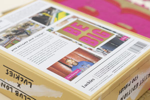 Print Club London is an online gallery and screen printing workshop at the vanguard of vibrant East London creativity. Working with their incredible pool of contemporary artists Luckies are proud to bring you a range of unique ‘Artist Edition’ jigsaws puzzles. Be Big by Dave Buonaguidi