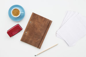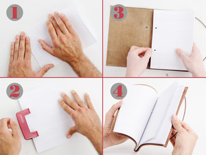 The last notebook you’ll ever buy! This beautiful leather notebook allows you to simply re-fill with scrap paper to make up the pages. Before recycling, waste sheets can folded, hole-punched and re-used as pages, ready to jot down notes and ideas. The simple mechanism makes it quick and easy to bind printed sheets together and give them a new purpose. And when you finish the pages, simply open and re-fill with other used sheets so that your notebook is ever-lasting. The perfect gift for environmental note-takers.