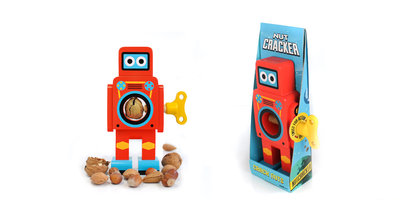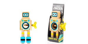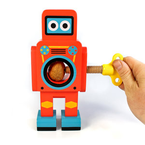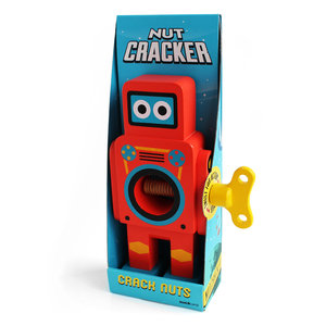 Vintage looking wind-up robots whose specialist task is to crack open nuts. Place any nut in the robot's belly and twist the key to crack open the shell. Robot Nut Crackers are easy to use and will break into any nut. Your new best friend is made from solid beech wood and finished with a gleaming retro paint-job...