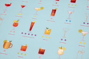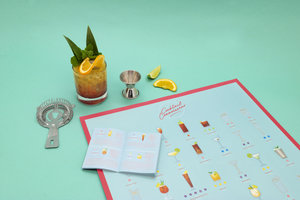 Scratchable cocktail chart and guidebook.