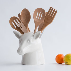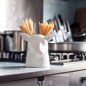 Ceramic deer head with 2 compartments for storing kitchen tools. The more utensils you add, the more magnificent your stag’s antlers will look. Are your kitchen drawers stuffed with difficult to find utensils? Stop hunting around while your fried eggs burn in the pan, easily grab a spatula when you need it. Free up valuable space and keep your cooking equipment close to hand. A practical gift for the king of the kitchen.