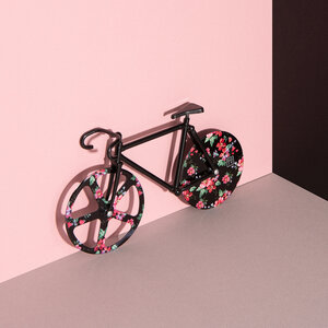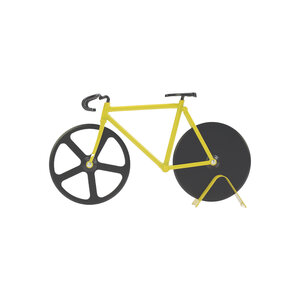 Unique pizza cutter shaped as a fancy fixie bike. Its double cutting wheel system makes it greatly easy to slice your pizza. It includes a stand to convert this quirk object in a decorative piece in your kitchen. This model is designed with the legendary colours of fixie bikes, inspired in the little bumblebee insects.