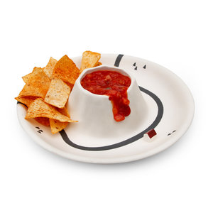 Fill up the dish with your favourite sauce and chips and get dipping. The messier the better, any spilt sauce looks like lava flowing down the volcano's slopes toward the lone house in the valley. Terrifying stuff indeed. Get ready for the party to erupt. A great gift for all the friends and family to enjoy. Made from bamboo fibre (a great new eco-alternative to melamine).