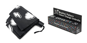 Brighten Up Bad Weather. White weather pattern transforms into a burst of colour when the umbrella gets wet. Printed with special ink, that comes to life when in contact with water.