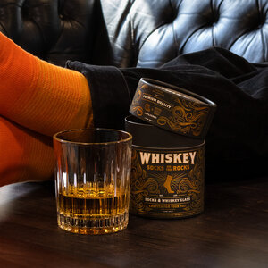 Charming retro Socks in a Whiskey Glass. For those who appreciate the finer things in life - at both ends of their body.